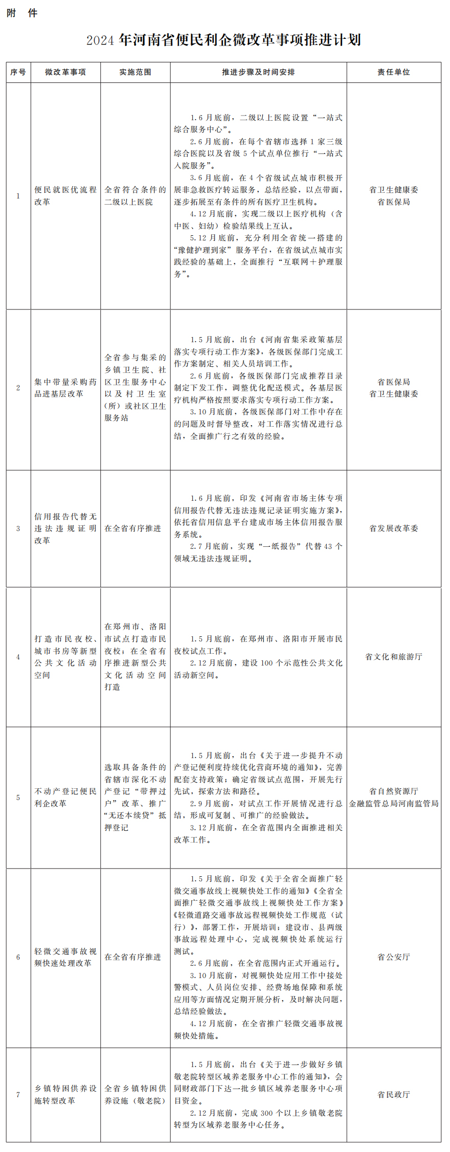 | 标 题 | 河南省人民政府办公厅关于印发2024年河南省便民利企微改革事项的通知 | ||