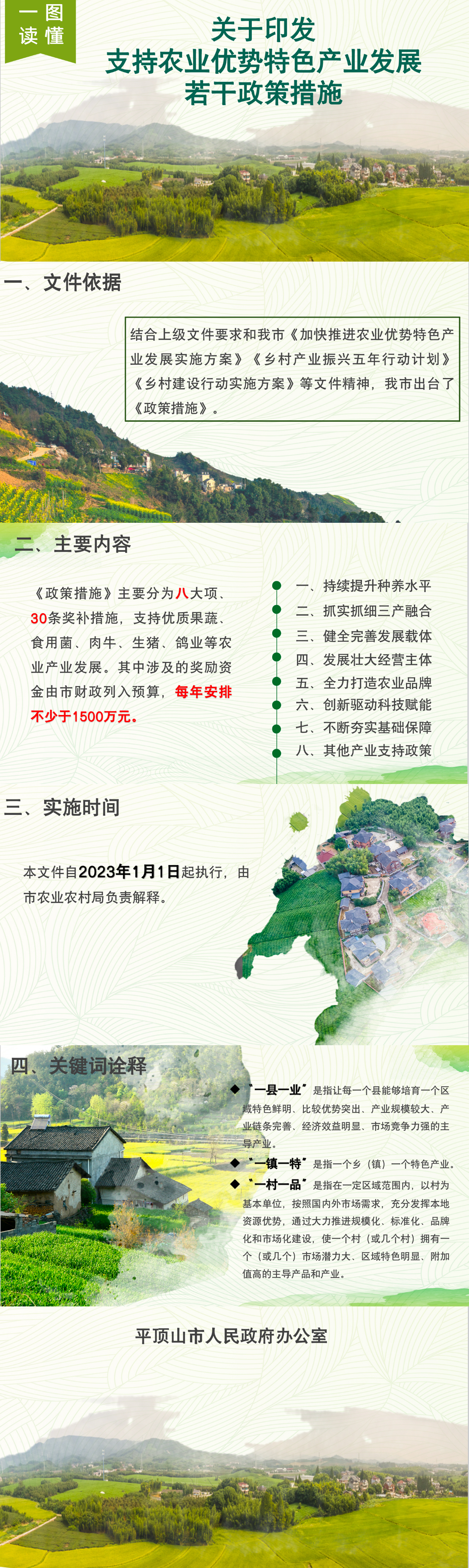 一图读懂丨 《平顶山市人民政府关于印发支持农业优势特色产业发展若干政策措施的通知》 平顶山市人民政府 2023-03-03 平顶山 ℃ 加入收藏 错误报告 发文字号 索引号 005452065/2023-00011 发布日期 2023-03-03 有效性 主题分类 文字解读 体裁分类 服务对象 一图读懂丨 《平顶山市人民政府关于印发支持农业优势特色产业发展若干政策措施的通知》 发布日期: 2023-03-03 浏览次数: 次 浏览 相关阅读 ▸ 平顶山市人民政府关于印发支持农业优势特色产业发展若干政策措施的通知 标签: 上一篇:文字解读丨《平顶山市“十四五”养老服务体系和康养产业发展规划》政策解读 下一篇:返回列表 相关推荐 留言与评论(共有 0 条评论) 验证码: