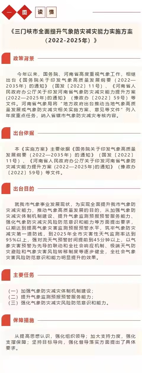 图解:三门峡市全面提升气象防灾减灾能力实施方案(2022-2025年) 三门峡市人民政府 2023-01-04 三门峡 ℃ 加入收藏 错误报告 相关政策: 标签: 上一篇:《三门峡市人民政府办公室关于三门峡市全面提升气象防灾减灾能力实施方案(2022-2025年)》政策解读材料 下一篇:返回列表 相关推荐 留言与评论(共有 0 条评论) 验证码: