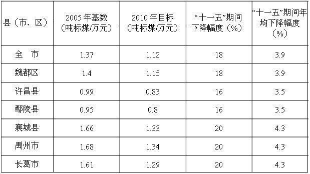 根据《河南省人民政府办公厅转发省发展改革委十一五期间各省辖市单位生产总值能源消耗降低指标计划的通知》(豫政办〔2007〕11号)精神和《许昌市国民经济和社会发展第十一个五年规划纲要》提出的单位生产总值能源消耗降低目标,制定本计划。