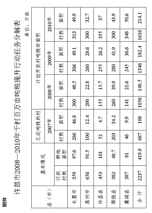 附件:许昌市2008—2010年千村百万亩吨粮提升行动任务分解表
