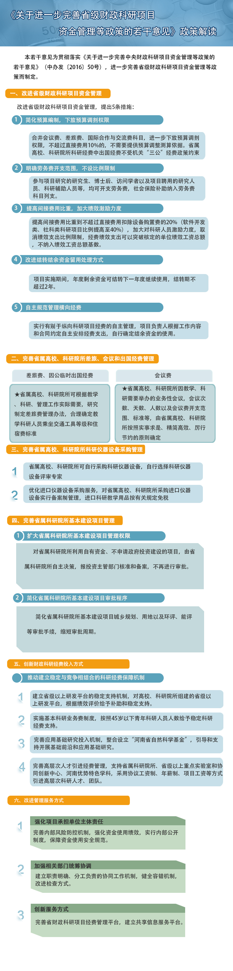《关于进一步完善省级财政科研项目资金管理等政策的若干意见》政策解读 许昌市人民政府 2017-07-28 许昌 ℃ 加入收藏 错误报告 索 引 号 :1141100000574771XC/201707-00042信息分类:上级政策解读发布机构:市科技局生成日期:2017-07-28 18:59名 称 :《关于进一步完善省级财政科研项目资金管理等政策的若干意见》政策解读文 号 :关 键 字 :《关于进一步完善省级财政科研项目资金管理等政策的若干意见》政策解读 文件链接:省委办 省政府办关于进一步完善省级财政科研项目资金管理等政策的若干意见 标签: 上一篇:许政[2008]60号 许昌市人民政府关于命名2007年度许昌市园林单位园林小区和绿化达标道路的通知 下一篇:返回列表 相关推荐 留言与评论(共有 0 条评论) 验证码: