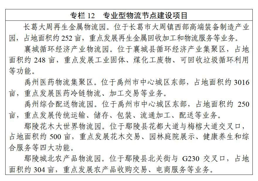 推进铁路专用线建设。以大型工矿企业、物流园区、港口等为重点,实施铁路专用线“进企入园”工程,逐步推进豫中陆路口岸综合物流港、襄城县综合物流园等3条铁路专用线建设,打通铁路运输“最后一公里”。