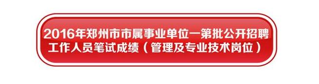 2016年郑州市市属事业单位第一批公开招聘工作人员笔试成绩查询通知 郑州市人力资源和社会保障局 2016-06-07 郑州 ℃ 加入收藏 错误报告 索引号:553165075/2016-00025主题分类:劳动、人事、监察/人事工作/业务信息/事业单位招聘发布机构:郑州市人力资源和社会保障局关键词:招聘,事业单位,笔试成绩文号成文日期:2016-06-07发布日期:2016-06-07体裁生效日期废止日期2016年郑州市市属事业单位第一批公开招聘工作人员笔试成绩查询通知 2016年郑州市市属事业单位第一批公开招聘工作人员笔试成绩已在本网站公布,考生可点击下方图片链接进行查询,或者在首页进入“郑州市事业单位公开招聘”专栏,进入考试成绩查询页面,输入准考证号及姓名查询本人成绩。 标签: 上一篇:郑州智慧旅游大数据平台与应用服务中心项目建议书通过批复 下一篇:返回列表 相关推荐 留言与评论(共有 0 条评论) 验证码: