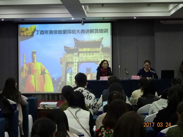 2017年3月24日下午,丁酉年黄帝故里拜祖大典讲解接待员培训班开班。本次培训班由丁酉年黄帝故里拜祖大典组委会主办、郑州市旅游局承办。郑州市旅游局纪检组长刘海青出席开班仪式并讲话,郑州市导游管理服务中心副主任王芳主持开班仪式。来自各县市区人民政府、机关企事业单位、大专院校、省(市)直旅行社80名形象讲解员参加了此次培训。