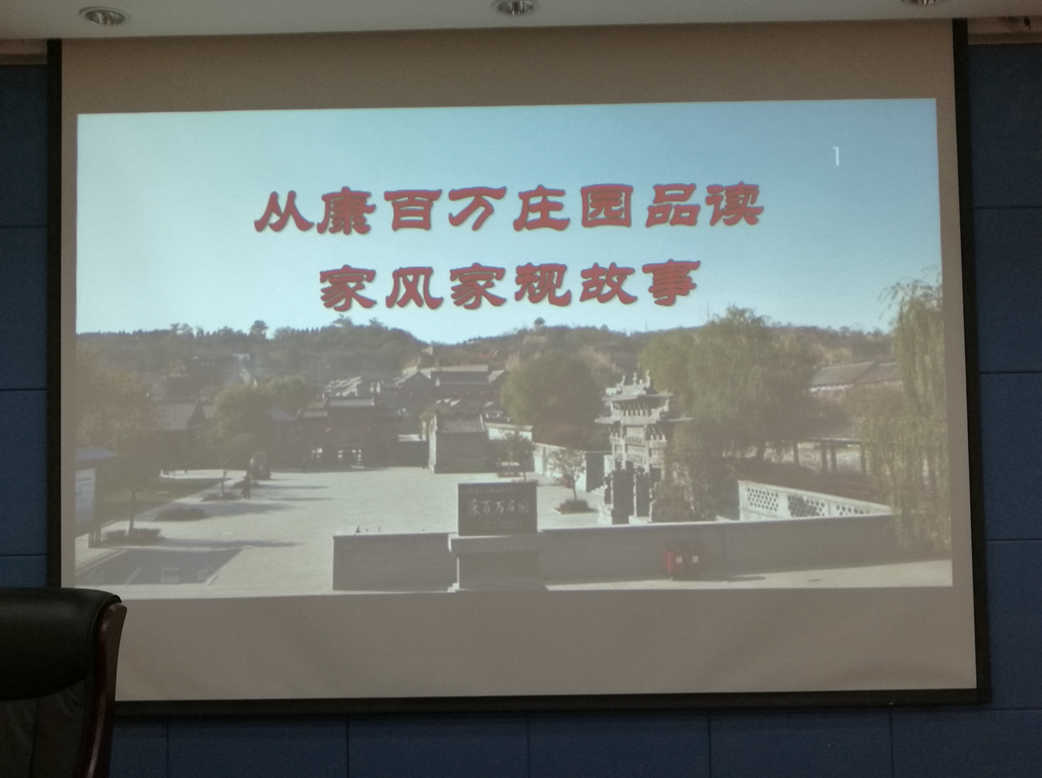 4月27日上午9:00,郑州市档案馆在四楼大教室利用“党员活动日”组织全体党员听党课,党支部书记廖洁为全体党员讲《从康百万庄园品读家风家规故事》,廖书记首先从康百万庄园的五个小故事开始讲起。