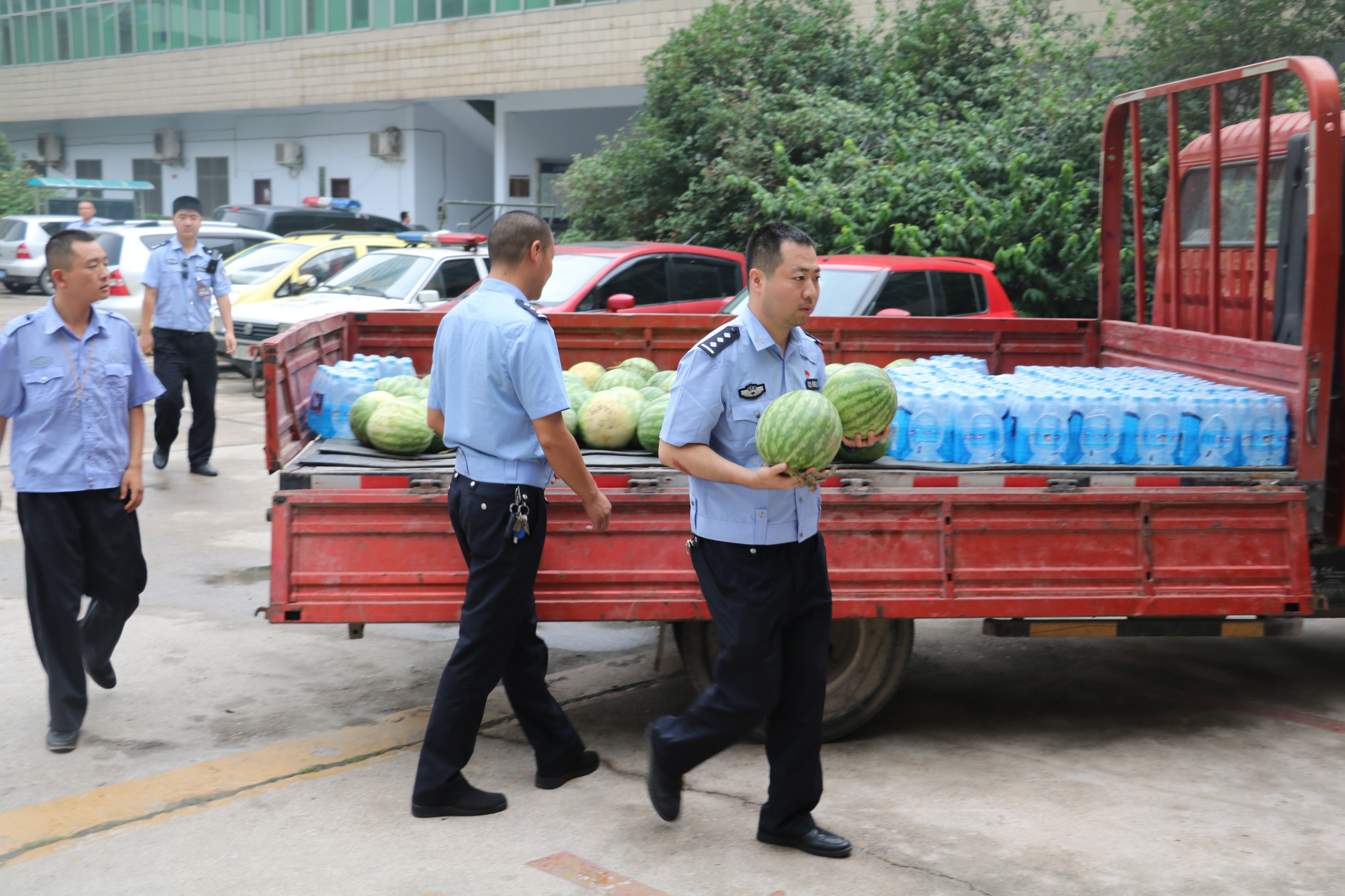 8月2日上午,中国铝业公司河南分公司氧化铝检修车间尚主任一行来到交巡警大队慰问交巡警大队全体民警,带来了矿泉水和西瓜等慰问品,为炎炎夏日中坚守一线岗位的交通民警送上清凉的问候。