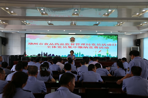 8月10日上午,郑州市食品药品监督管理局组织开展党员活动日集中缴纳党费活动,深入推进“两学一做”常态化、制度化,落实党员缴纳党费的义务和责任,进一步增强全体党员的党性观念和党员意识。
