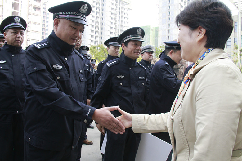 仪式上,区委书记宋洁对分局“党的十九大安保”工作给予高度评价。她指出,9月份以来,全区公安民警、辅警为“党的十九大”胜利召开,放弃休假、坚守岗位、履职尽责,舍小家、为“大家”,特别是在“双节”期间,更展现了“一家不圆、万家圆”的从警境界,用汗水甚至透支生命,铸就安保“铜墙铁壁”,用扎实的安保业绩书写了“金色盾牌、热血铸就”的豪情壮志,为全区广大党员干部做出了表率、树立了榜样;她强调,上街区连续九年获得“河南省平安建设先进地区”称号,与公安机关的突出贡献密不可分。希望广大公安民警继续发扬“吃苦耐劳、敢打必胜”的优良作风,继续为上街区经济、社会发展“保驾护航”,圆满完成区委、区政府赋予的各项任务、使命;她表示,公安机关是和平年代任务最重、付出最大、牺牲最多的光荣集体,体现的是时代担当、责任和荣誉,再苦不能苦公安!区委、区政府要一如既往支持公安工作,尤其在经费、人力、政策上给予更大倾斜保障,推动上街公安工作长远发展,为取得更大成绩打牢根基!
