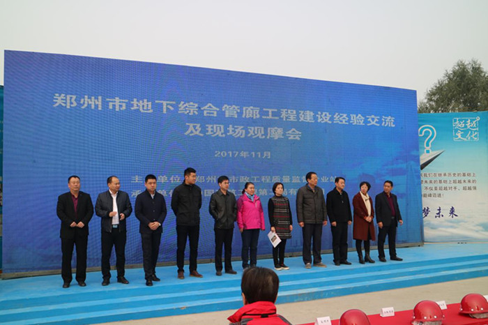 2017年11月16日上午9:30,由郑州市市政工程质量监督专业站主办,中国建筑第二工程局有限公司承办的郑州市地下综合管廊建设经验交流及现场观摩会,在惠济花园口镇中心城区地下综合管廊PPP项目现场胜利召开。市内五区建设局和施工、监理等十七个单位共计120余人参加观摩会。