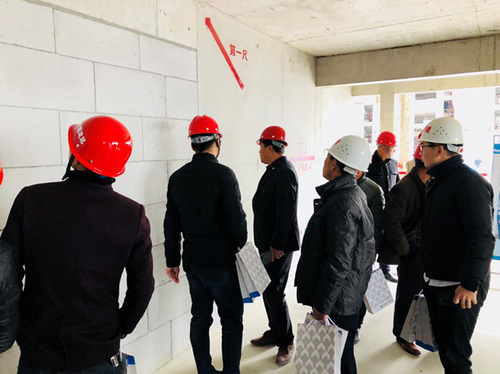 在项目管理人员的引导下,参观人员实地观摩了永威金桂苑项目样板展示区、粗装修样板区、绿色施工样板区、水电安装样板展示、质量标准化展示区、降尘喷淋、远程雾炮车、生产用水循环利用系统展示区等亮点区域。