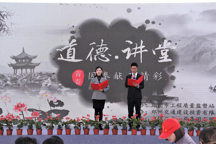 此次道德讲堂分为八个环节:自省、唱歌曲、诵经典、学模范、发善心、向德鞠躬、一堂一善事、送吉祥。是贯彻党的十九大精神,践行我委提出的“两学两提升”学习教育活动的实际行动。通过活动与会代表了解并学习身边人、身边事,传承和弘扬民族文化,进一步提升社会文明程度,为郑州市国家中心城市建设添砖加瓦。