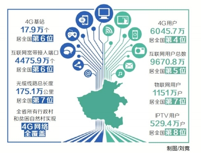 宽带建设深入推进,网络能力持续提升。4G基站达到17.9万个,居全国第6位。互联网宽带接入端口达到4475.9万个,居全国第6位。光缆线路总长度达到175.1万公里,居全国第7位。全省所有行政村和贫困自然村实现4G网络全覆盖。
