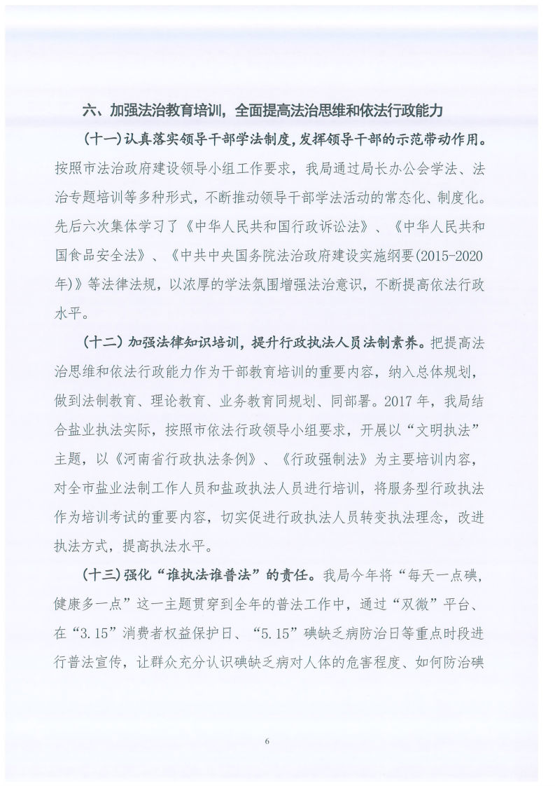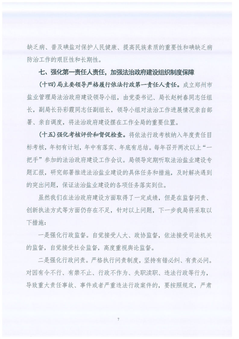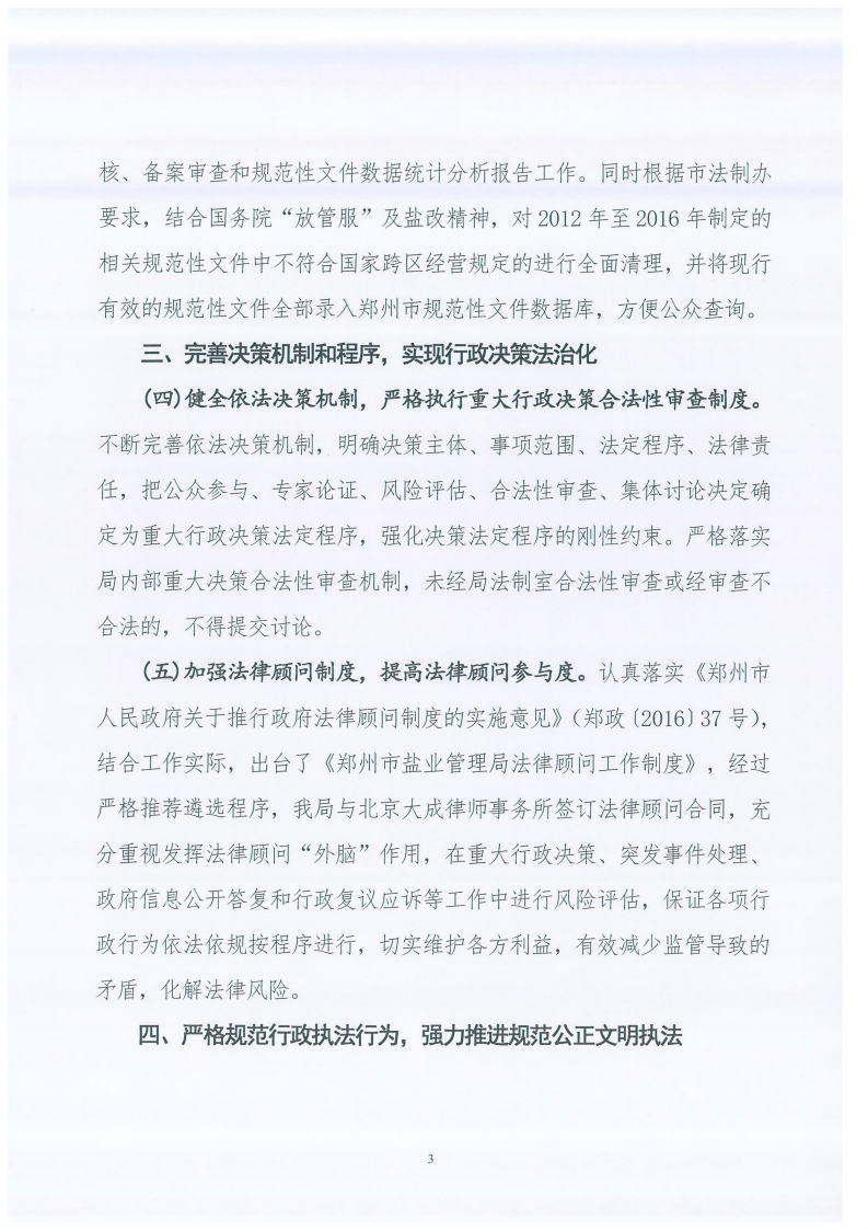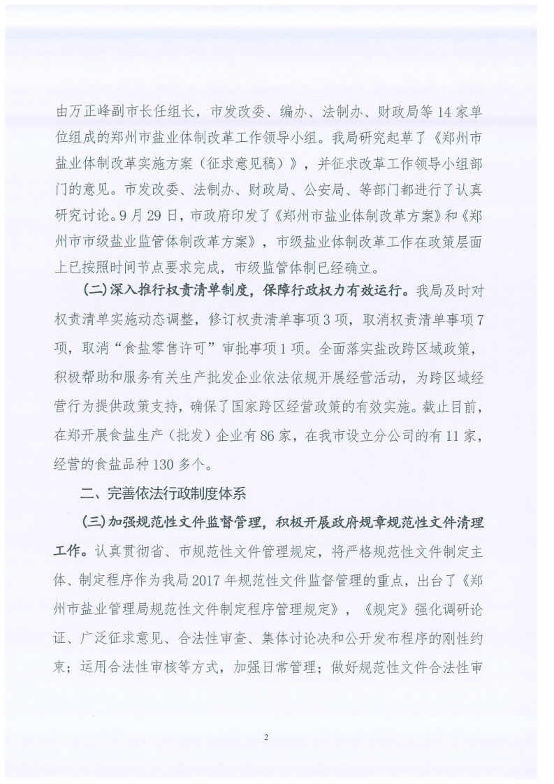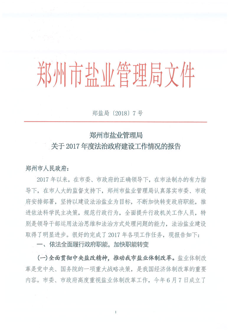 郑州市盐业管理局关于2017年法治政府建设工作情况的报告 郑州市盐业局 2018-03-12 郑州 ℃ 加入收藏 错误报告 索引号:337191252/2018-00002主题分类:综合政务/工作信息/工作报告发布机构:郑州市盐业局关键词:工作,工作信息,法治政府文号:郑盐局〔2018〕7号成文日期:2018-03-09发布日期:2018-03-12体裁:报告生效日期废止日期郑州市盐业管理局关于2017年法治政府建设工作情况的报告 标签: 上一篇:郑州市物价局召开2018年度全市价格系统党风廉政建设暨价格工作会议 下一篇:返回列表 相关推荐 留言与评论(共有 0 条评论) 验证码:
