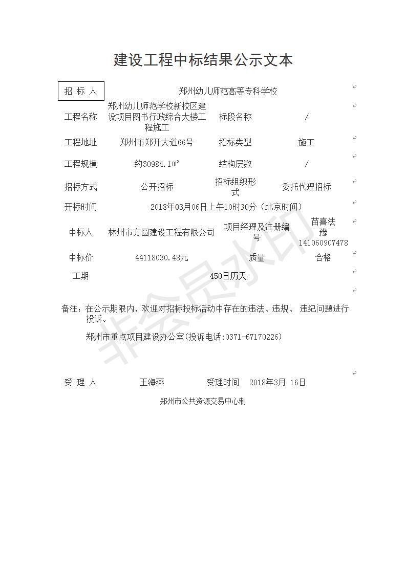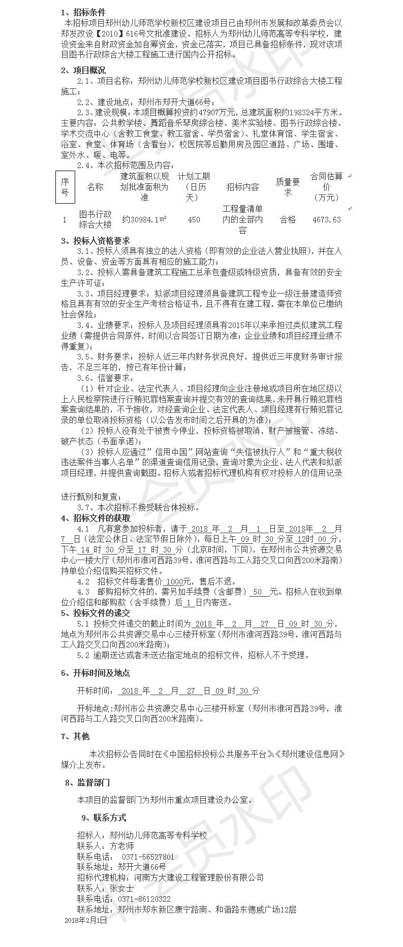 郑州幼儿师范学校新校区建设项目图书行政综合大楼工程施工招标投标信息 郑州市发展和改革委员会 2018-03-20 郑州 ℃ 加入收藏 错误报告 索引号:005252100/2018-00778主题分类:国民经济管理、国有资产监督/重大建设项目/项目信息/重大建设项目招标投标信息发布机构:郑州市发展和改革委员会关键词:重大建设项目,招投标文号成文日期:2018-03-20发布日期:2018-03-20体裁生效日期废止日期郑州幼儿师范学校新校区建设项目图书行政综合大楼工程施工招标投标信息招标投标违法处罚信息:无 标签: 上一篇:郑州幼儿师范学校新校区建设项目2#学生宿舍、图书行政综合大楼监理招标投标信息 下一篇:返回列表 相关推荐 留言与评论(共有 0 条评论) 验证码: