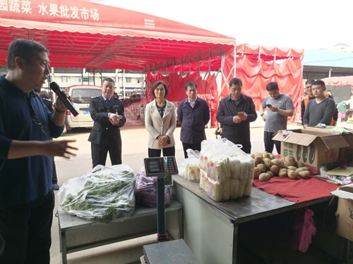 李建霞一行来到毛庄农产品批发市场、丹尼斯惠济万达店实地查看食品安全监管措施落实情况,并就当前工作成效给予了肯定。
