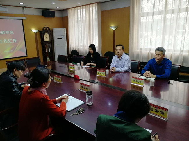2018年3月28日河南省档案局翟霣远处长在郑州市档案局贾欣营副局长、杨红燕处长的陪同下,对河南工业技师学院进行调研。