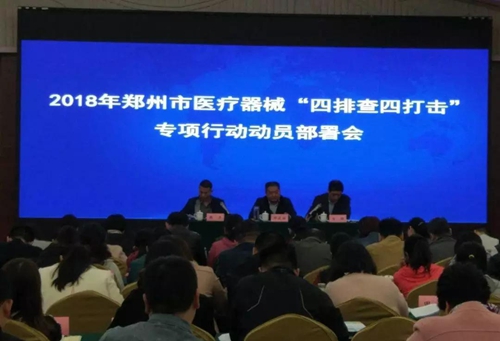 4月2—4日,郑州市食药监管局组织召开了2018年医疗器械监管工作暨“四排查四打击”动员部署会,各县(市、区)局分管领导、监管科长参加会议,市局邹庆明副局长参会并作重要讲话。