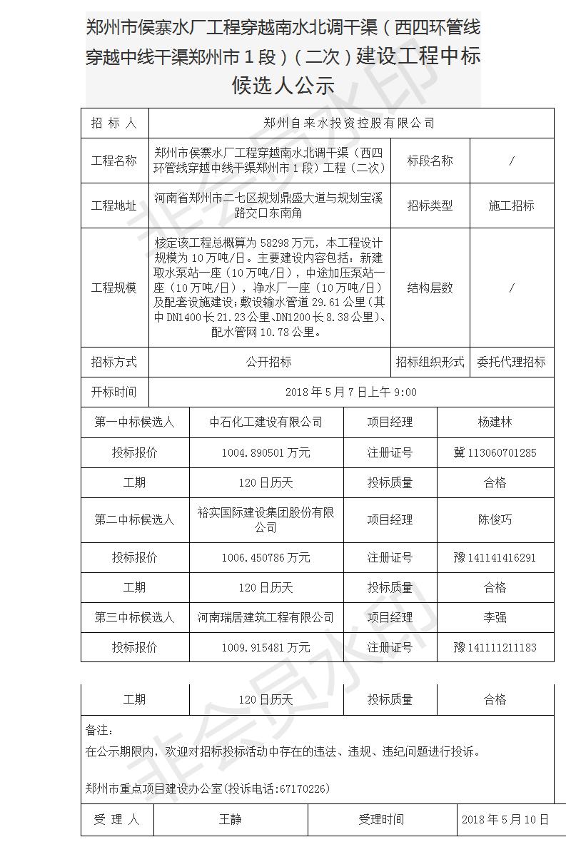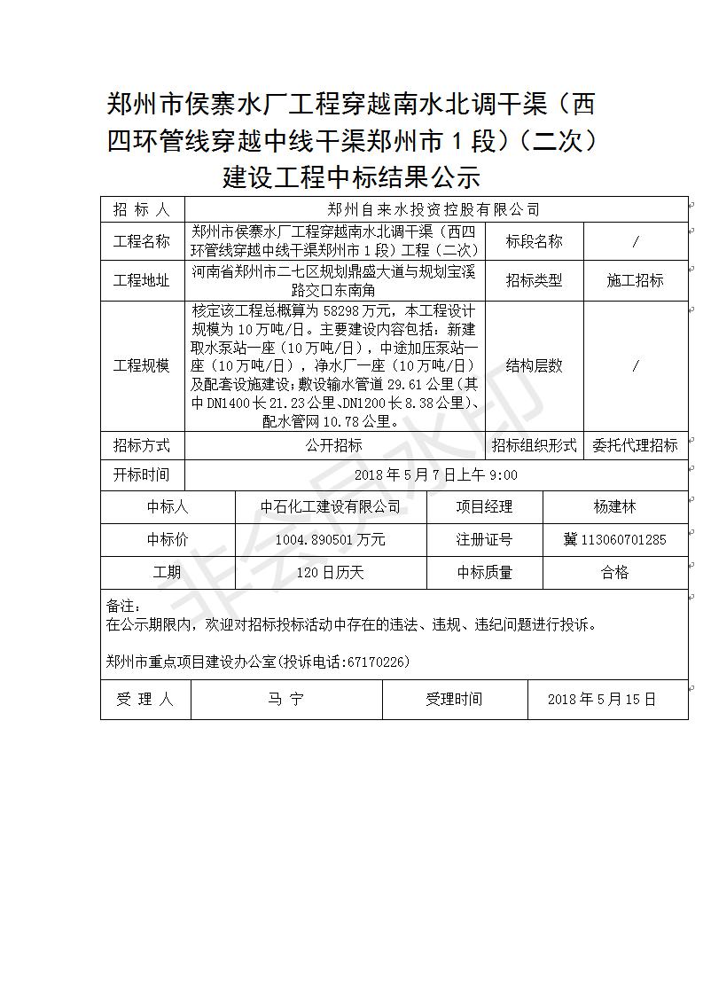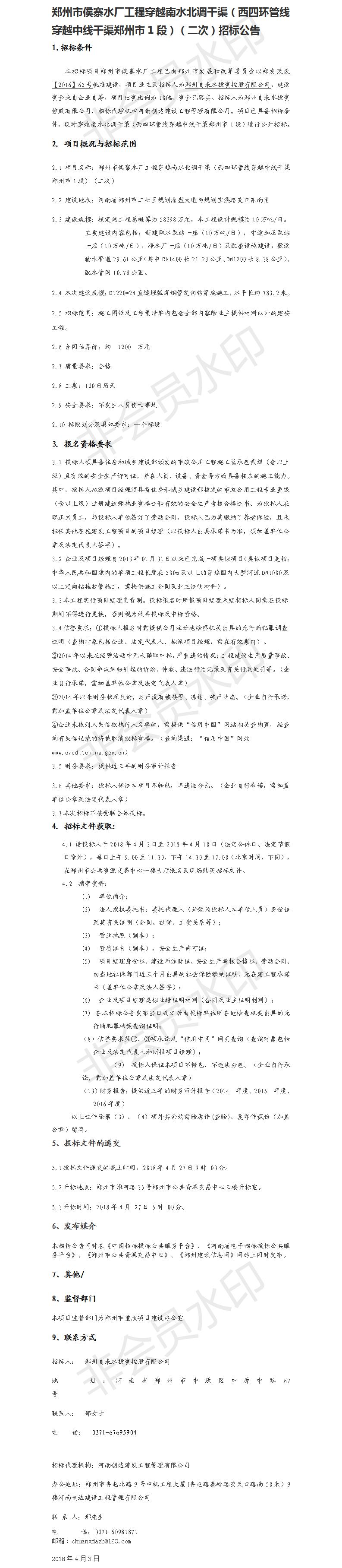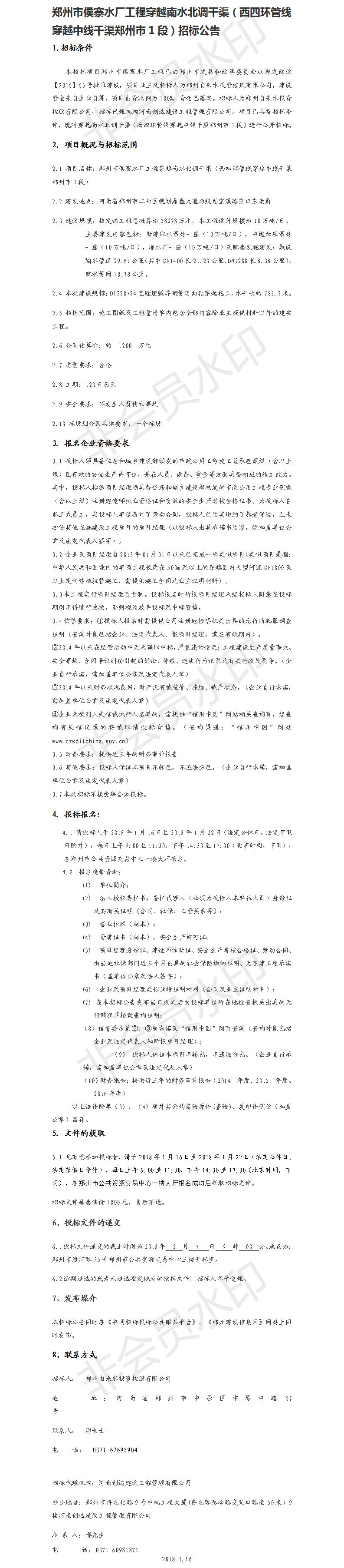 郑州市侯寨水厂工程穿越南水北调干渠(西四环管线穿越中线干渠郑州市1段)工程招标投标信息 郑州市发展和改革委员会 2018-05-21 郑州 ℃ 加入收藏 错误报告 索引号:005252100/2018-00801主题分类:国民经济管理、国有资产监督/重大建设项目/项目信息/重大建设项目招标投标信息发布机构:郑州市发展和改革委员会关键词:重大建设项目,招投标文号成文日期:2018-05-21发布日期:2018-05-21体裁生效日期废止日期郑州市侯寨水厂工程穿越南水北调干渠(西四环管线穿越中线干渠郑州市1段)工程招标投标信息招标投标违法处罚处罚信息:无 标签: 上一篇:富力建业凯悦广场工程施工招标投标信息 下一篇:返回列表 相关推荐 留言与评论(共有 0 条评论) 验证码:
