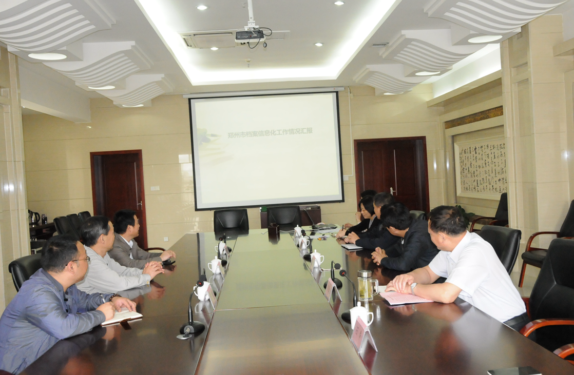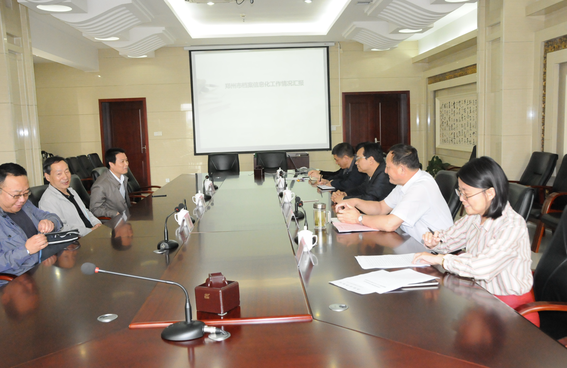 徐宏杰局长主持并介绍了我局基本情况。石华副处长对档案信息系统建设、信息资源建设和档案信息系统在网络上的应用进行了详细介绍。随后,徐秋生局长一行参观了数字化机房和郑州记忆展。