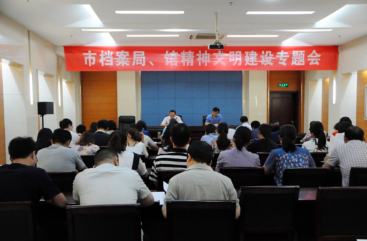5月31日,市档案局、馆召开精神文明建设工作专题会,党委书记、局长徐宏杰主持会议,对2018年度的精神文明建设工作进行部署。局、馆干部职工共54人参加会议。