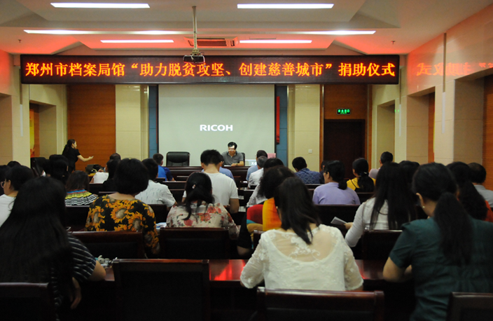 9月5日上午,郑州市档案局馆以“助力脱贫攻坚 创建慈善城市”为主题的捐赠仪式,在市档案馆四楼道德讲堂举行,局馆全体党员干部职工参加了捐赠仪式。