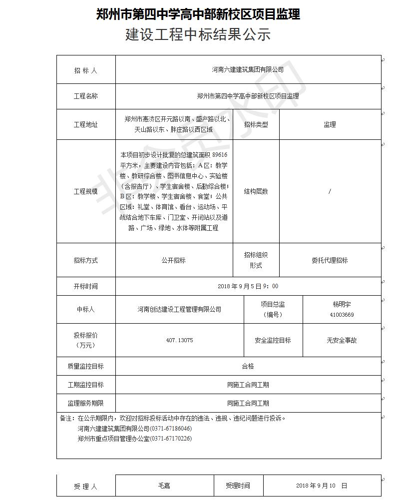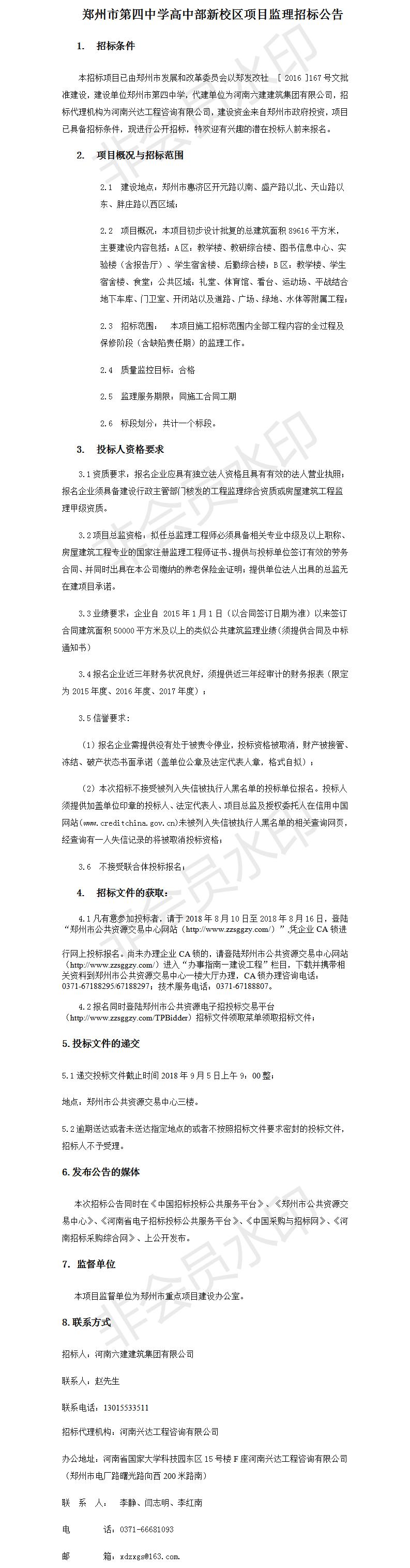 郑州市第四中学高中部新校区项目监理招标投标信息 郑州市发展和改革委员会 2018-09-13 郑州 ℃ 加入收藏 错误报告 索引号:005252100/2018-00826主题分类:国民经济管理、国有资产监督/重大建设项目/项目信息/重大建设项目招标投标信息发布机构:郑州市发展和改革委员会关键词:重大建设项目,招投标文号成文日期:2018-09-13发布日期:2018-09-13体裁生效日期废止日期郑州市第四中学高中部新校区项目监理招标投标信息招标投标违法处罚处罚信息:无 标签: 上一篇:郑州市郑开学校建设项目施工招标投标信息 下一篇:返回列表 相关推荐 留言与评论(共有 0 条评论) 验证码: