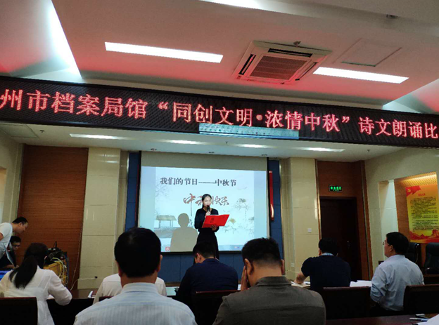 中秋代表着阖家团圆,中秋代表着亲人团聚。为了让广大干部职工加深对中秋传统节日文化习俗的了解和认同,让大家感受到中华民族传统文化的魅力,自觉弘扬中华优秀传统,传承中华美德,过一个有意义的中秋佳节。20号下午,郑州市档案局馆全体干部职工在档案馆三楼道德讲堂开展了一场别开生面的中秋节诗歌朗诵比赛。