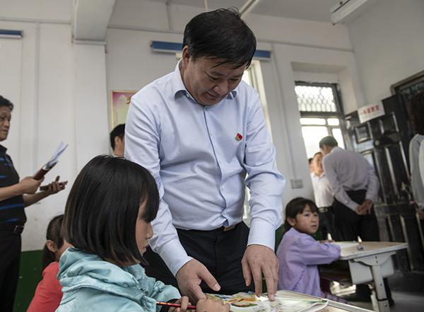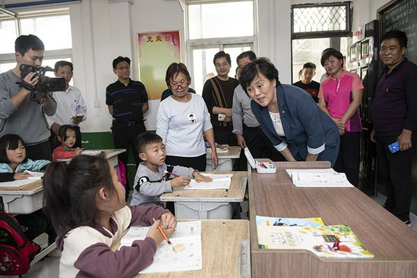 郑州市教育局党组书记、局长王中立在王庄村教学点看望学生。