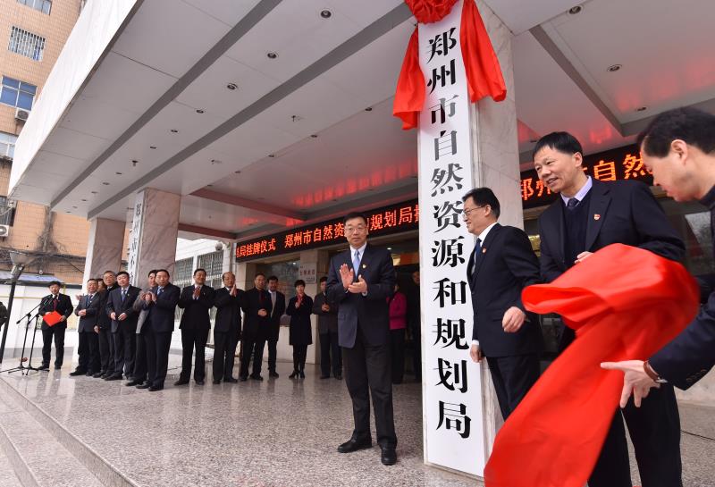 1月29日上午,郑州市自然资源和规划局举行挂牌仪式。河南省自然资源厅党组成员、副厅长陈治胜,郑州市政府副市长吴福民,市自然资源和规划局党组书记吕安民共同为新组建的郑州市自然资源和规划局揭牌。