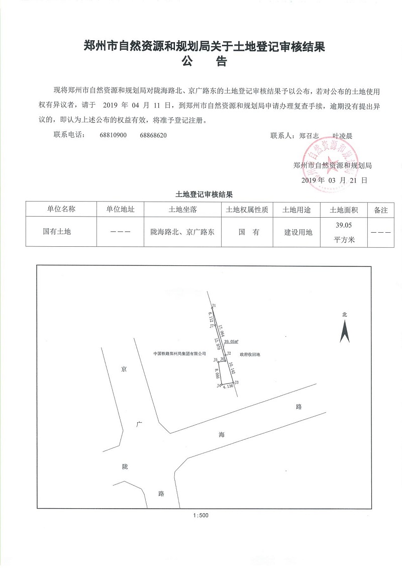 郑州市自然资源和规划局关于一宗国有土地(陇海路北、京广路东)03的土地登记审核结果公告 郑州市自然资源和规划局 2019-03-27 郑州 ℃ 加入收藏 错误报告 索引号:005252370/2019-00053主题分类:综合政务/公报公示/公告公示发布机构:郑州市自然资源和规划局关键词:土地登记,审核结果文号成文日期:2019-03-27发布日期:2019-03-27体裁生效日期废止日期郑州市自然资源和规划局关于一宗国有土地(陇海路北、京广路东)03的土地登记审核结果公告 标签: 上一篇:2019年郑州市林业局预算公开 下一篇:返回列表 相关推荐 留言与评论(共有 0 条评论) 验证码: