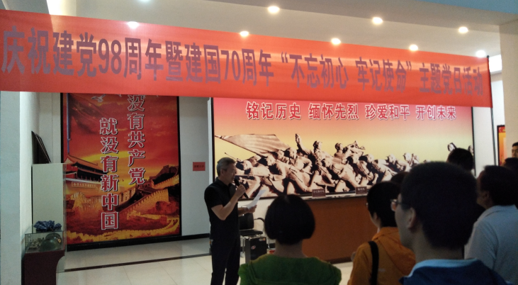 为庆祝建党98周年暨建国70周年,6月28日上午,郑州市档案馆前往新密尖山中原豫西民主抗日纪念园举行“不忘初心、牢记使命”主题党日活动,全体党员参加。徐宏杰同志主持此次活动,共分五个内容:1.表彰优秀共产党员;2.党员代表发言;3.重温入党誓词;4.交纳党费;5.参观中原豫西民主抗日纪念园。