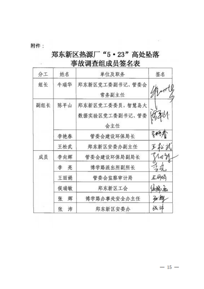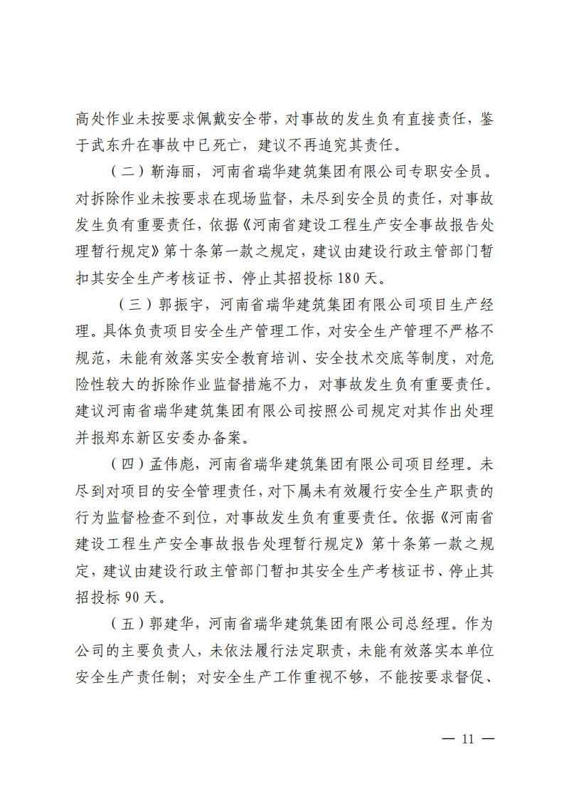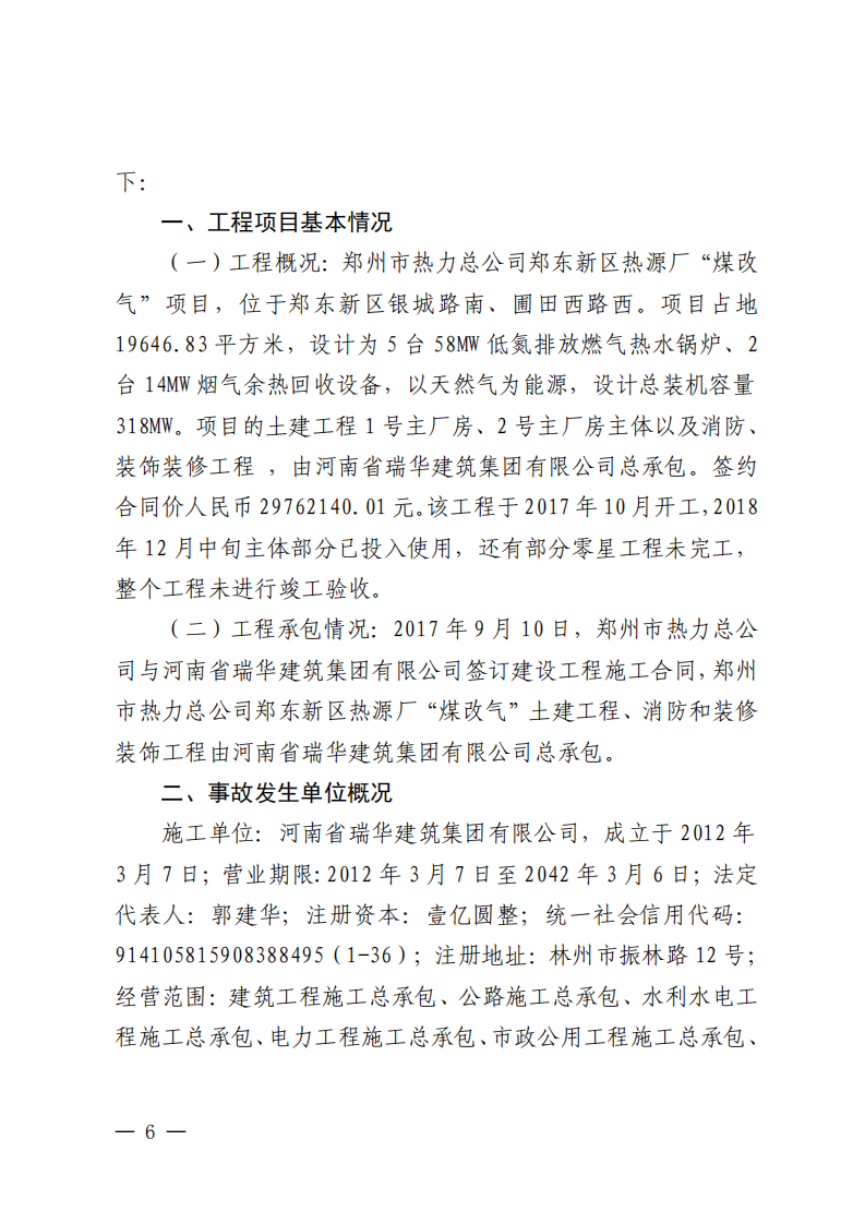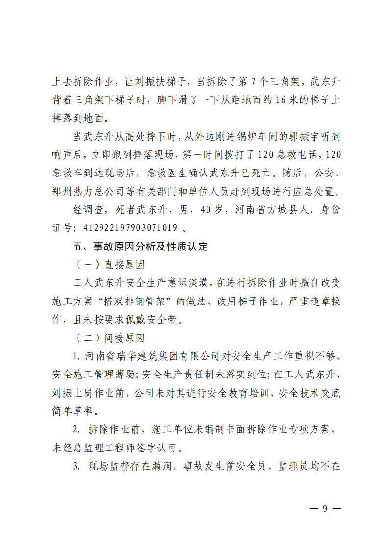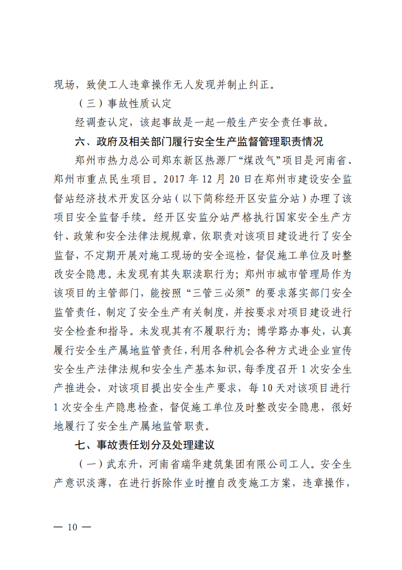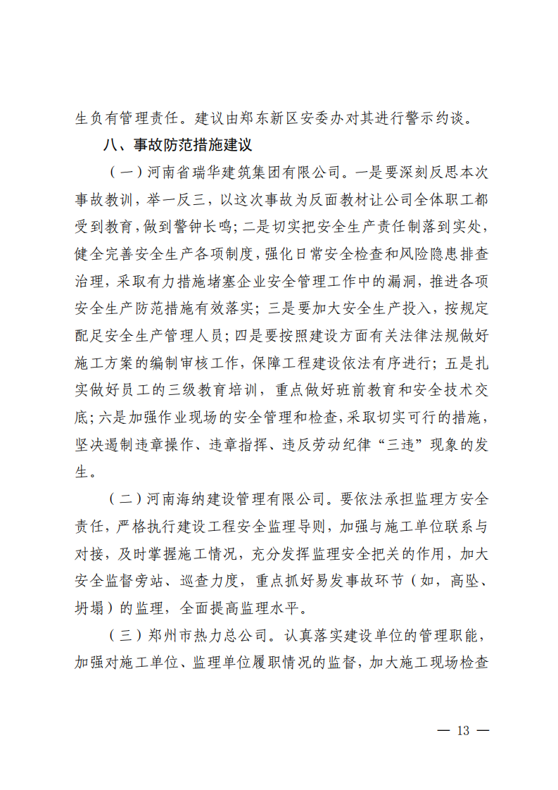关于落实郑东新区热源厂“5·23”高处坠落事故调查处理意见的通知 郑州市应急管理局 2019-09-01 郑州 ℃ 加入收藏 错误报告 索引号:005252995/2019-00042主题分类:市场监管、安全生产监管/安全生产监管/业务信息/安全生产事故调查报告信息发布机构:郑州市应急管理局关键词:监管,安全文号:郑安委办〔2019〕73号成文日期:2019-08-09发布日期:2019-09-01体裁:通知生效日期废止日期关于落实郑东新区热源厂“5·23”高处坠落事故调查处理意见的通知 标签: 上一篇:关于近期五起事故的通报 下一篇:返回列表 相关推荐 留言与评论(共有 0 条评论) 验证码: