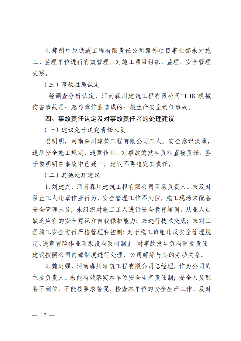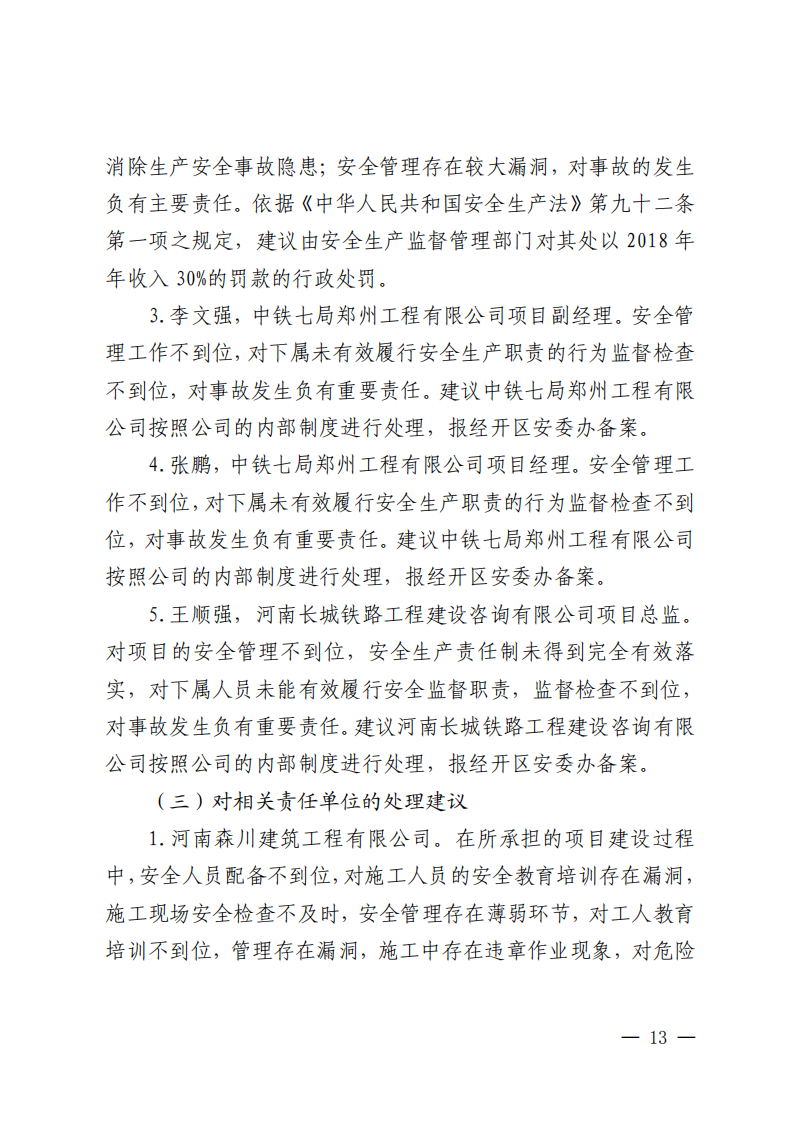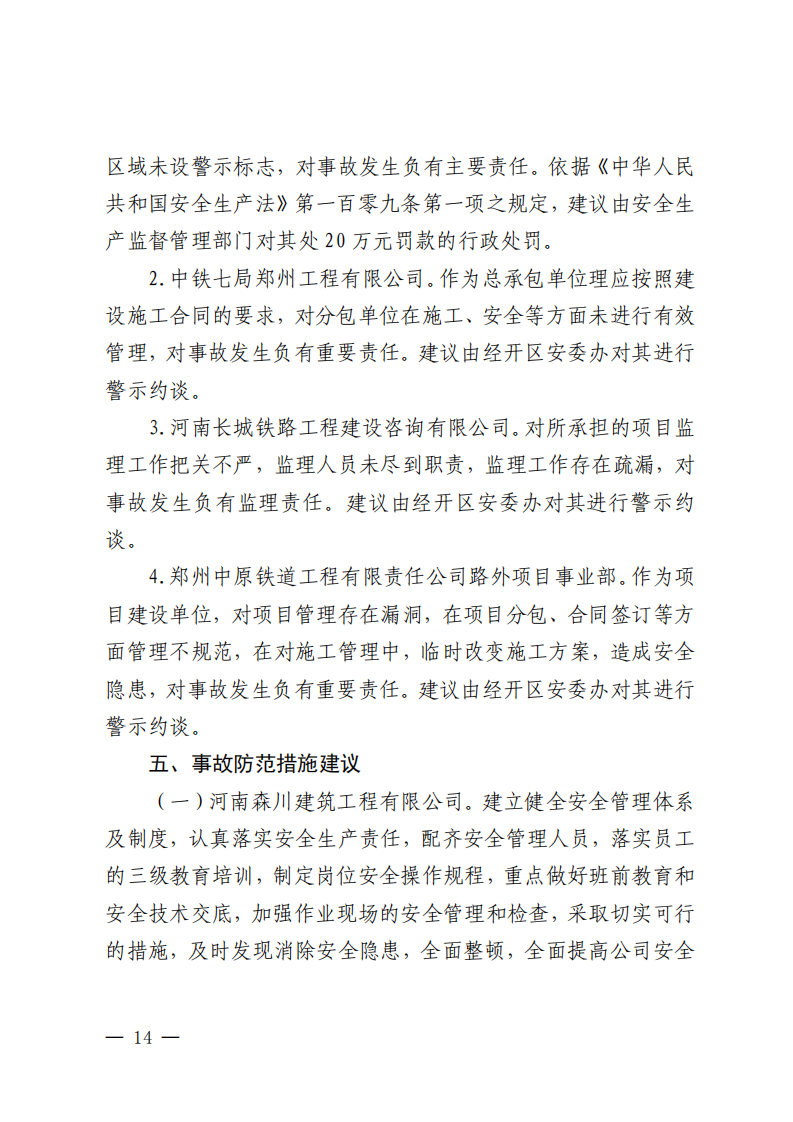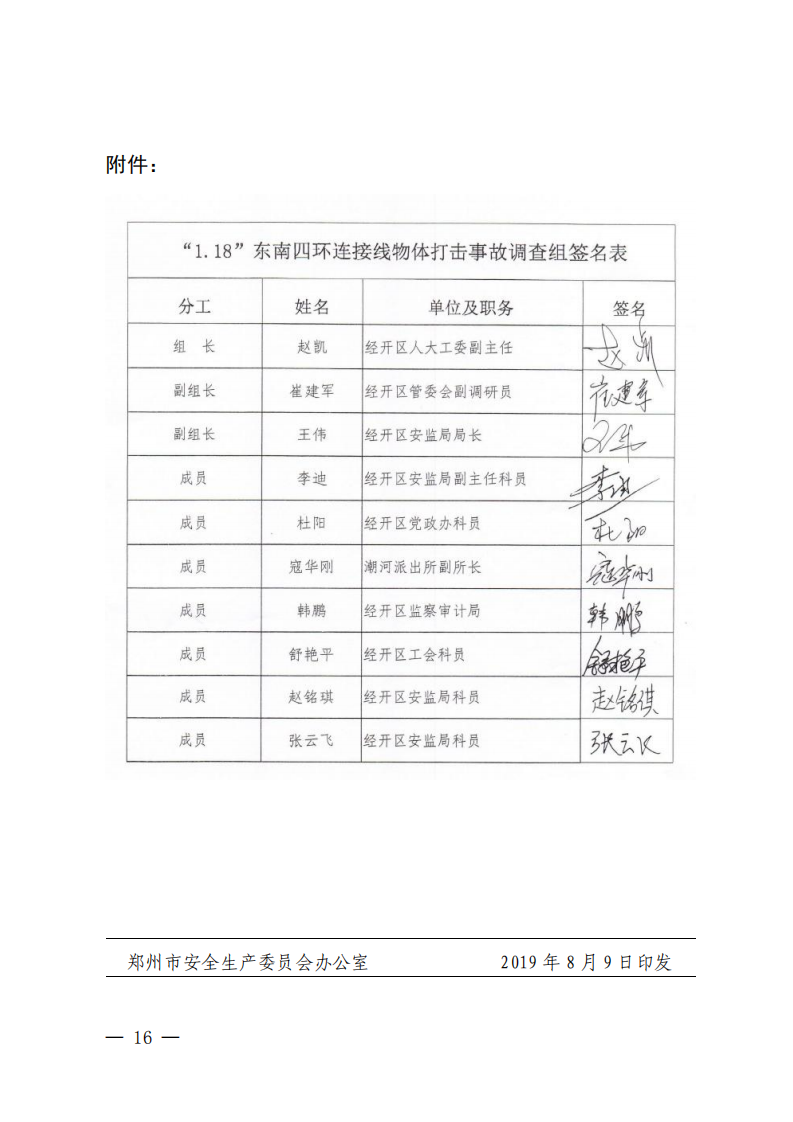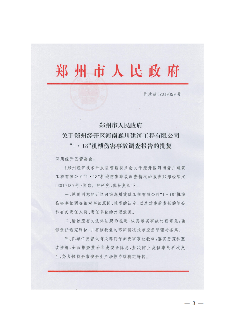 关于落实郑州经开区河南森川建筑工程有限公司“1·18”机械伤害事故调查处理意见的通知 郑州市应急管理局 2019-09-01 郑州 ℃ 加入收藏 错误报告 索引号:005252995/2019-00041主题分类:市场监管、安全生产监管/安全生产监管/业务信息/安全生产事故调查报告信息发布机构:郑州市应急管理局关键词:监管,安全文号:郑安委办〔2019〕72号成文日期:2019-08-09发布日期:2019-09-01体裁:通知生效日期废止日期关于落实郑州经开区河南森川建筑工程有限公司“1·18”机械伤害事故调查处理意见的通知 标签: 上一篇:关于落实郑东新区热源厂“5·23”高处坠落事故调查处理意见的通知 下一篇:返回列表 相关推荐 留言与评论(共有 0 条评论) 验证码: