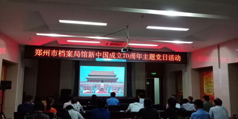 10月1日上午,郑州市档案局馆的党员干部们一早就来到会议室,聚精会神地观看“庆祝中华人民共和国成立70周年大会”的直播报道。