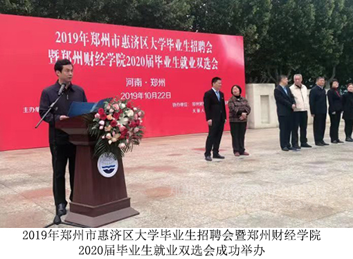 2019年10月22日上午,由郑州市人力资源和社会保障局,郑州市惠济区人民政府和郑州财经学院共同举办的2019年郑州市惠济区大学毕业生招聘会暨郑州财经学院2020届毕业生就业双选会在郑州财经学院举行。郑州市人力资源和社会保障局党组成员康中超委员出席招聘会启动仪式并发表讲话。