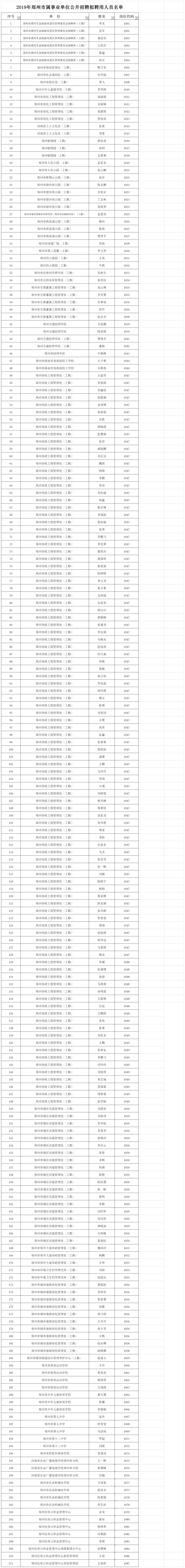 根据招聘公告规定,2019年郑州市属事业单位公开招聘笔试、面试、体检、考察环节均已结束,依照用人单位综合考察结论及报送结果现将2019年郑州市属事业单位公开招聘涉及的73个岗位的211名拟聘用人员进行公示。