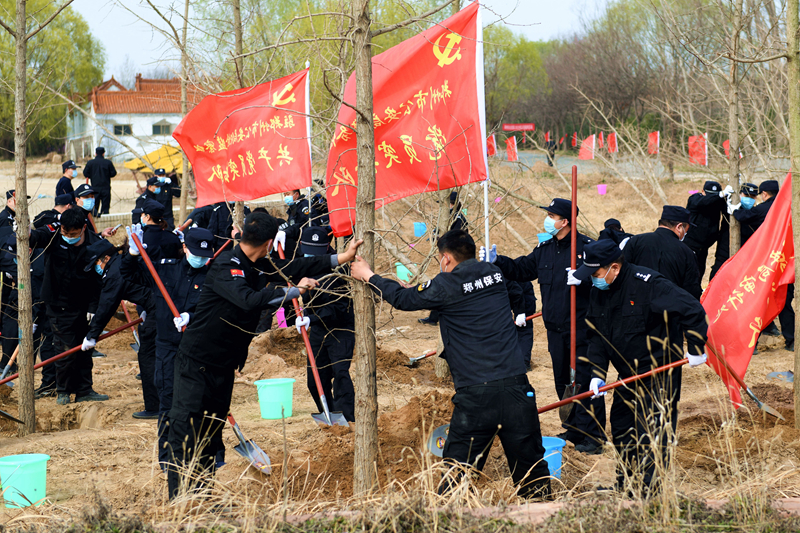 下午3时许,东湖院区红旗烈烈、党旗飘扬,全体人员整齐列队,张保副局长受副市长、市公安局局长马义中委托代表市局党委对大家进行植树动员。他指出在当前疫情防控还处于攻坚吃劲的关键时期,我们在此开展植树活动,是贯彻落实中央、省委、市委关于深入推进黄河生态保护和高质量发展核心示范区建设的现实体现,更是为美化郑州、建设美丽郑州贡献自己力量的具体行动,做好绿化植树、优化城市环境是功在当代、利在千秋、惠及子孙的德政工程。他要求,全市各级公安机关要结合自身实际,从本单位做起积极组织开展植树活动,做到种植一片树、成活一片林,让绿色充满警营,为推动郑州国家中心城市更美、更亮做出应有贡献。